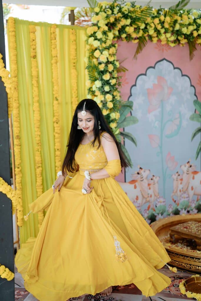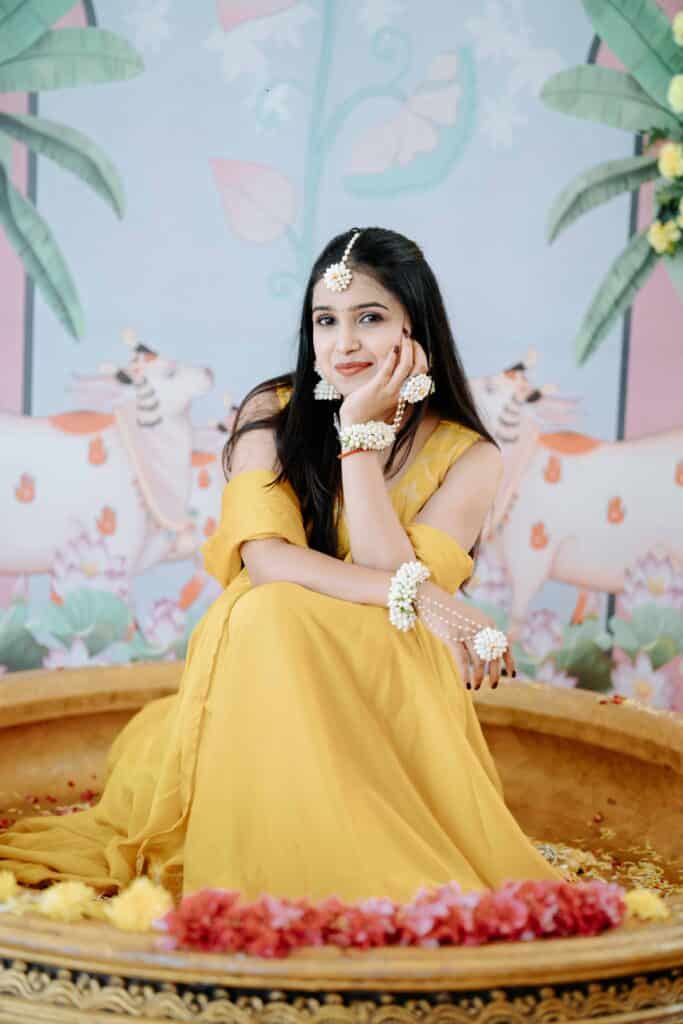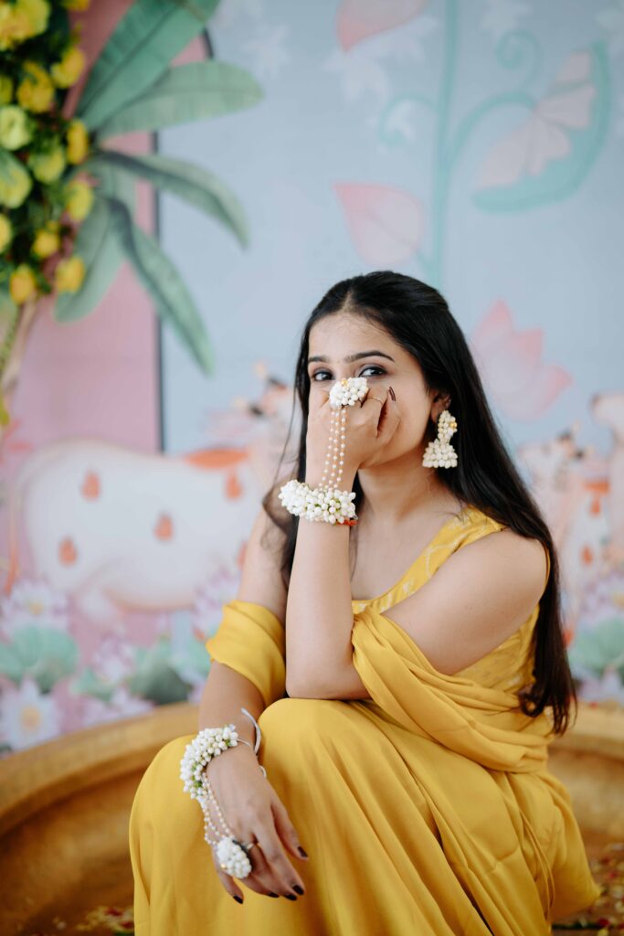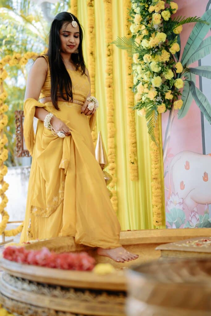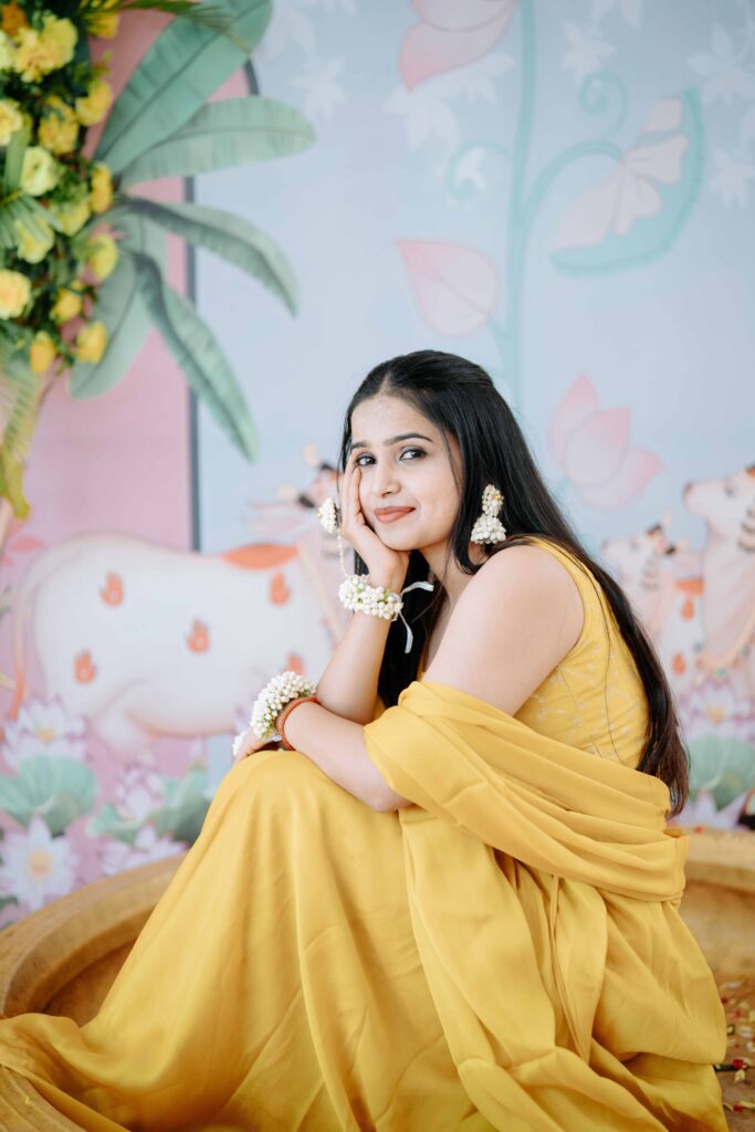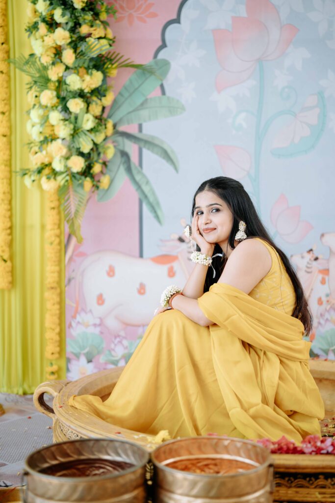 In the warmth of turmeric and blessings, Pratibha’s Haldi ceremony was a beautiful blend of tradition and joy. Surrounded by loved ones, sacred chants, and the fragrance of haldi and flowers, she glowed with grace and happiness. A heartfelt ritual that marked the auspicious start of her journey into marital bliss.